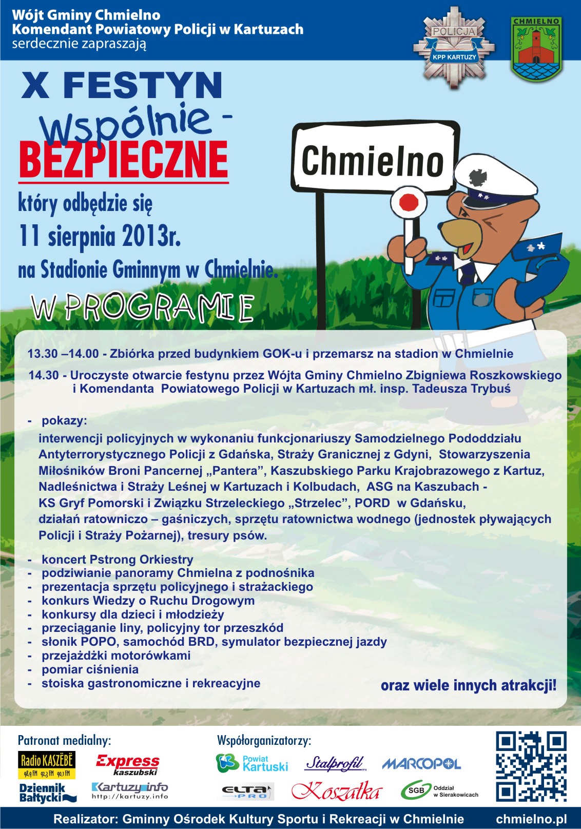 Na festyn zapraszali Wójt Gminy Chmielno i Komendant Powiatowy Policji w Kartuzach.